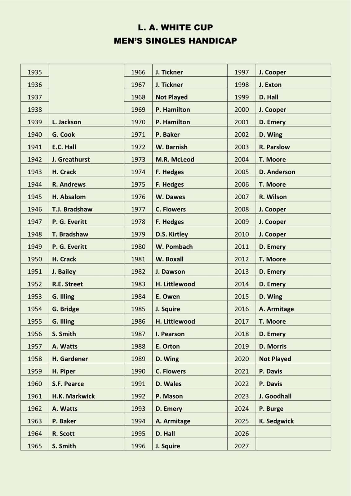 Bookham Bowling Club - L. A. White Cup