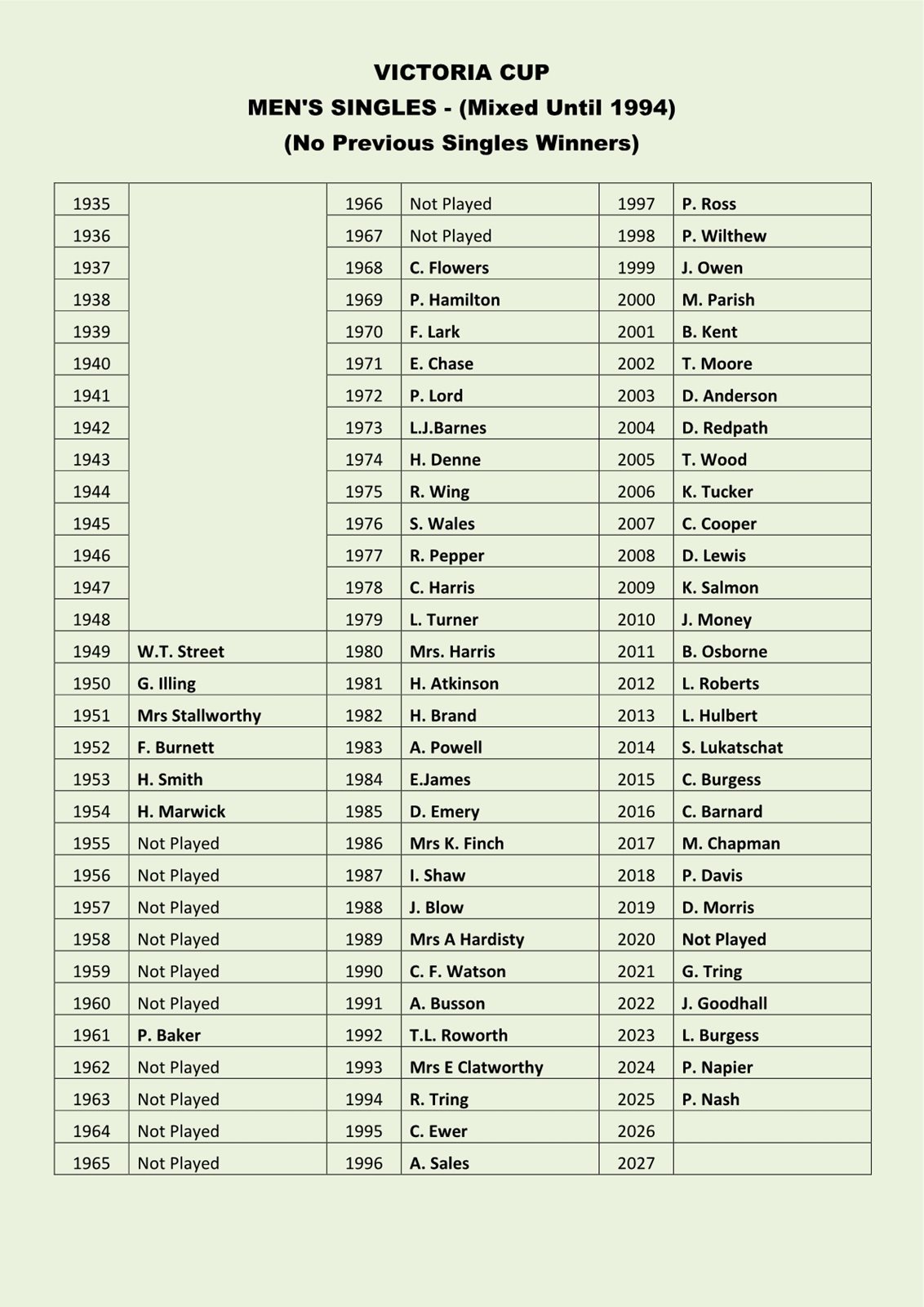 Bookham Bowling Club - Victoria Cup