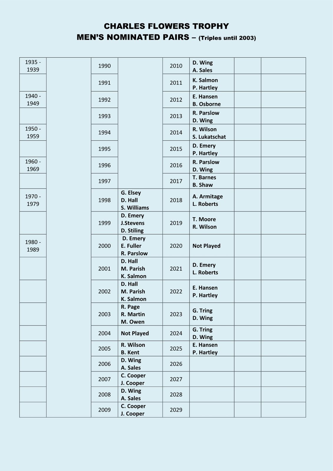 Bookham Bowling Club - Charles Flowers Trophy